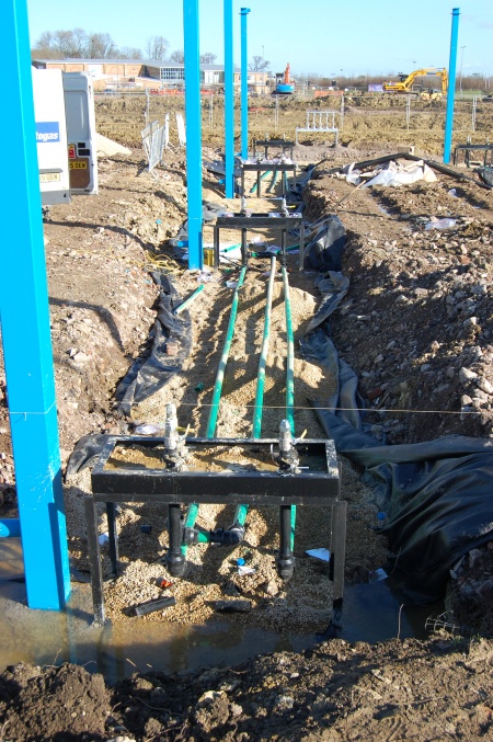Installation of the pump feed pipework and pump bases followed in early February, after which the forecourt concrete was laid. There is still a fair amount of work to do on the kiosk and access roads are yet to be started. Once the new filling station is open, the old facility will be demolished to make way for the new town square and freestanding non-food retail units to the north-west of the new Tesco store.