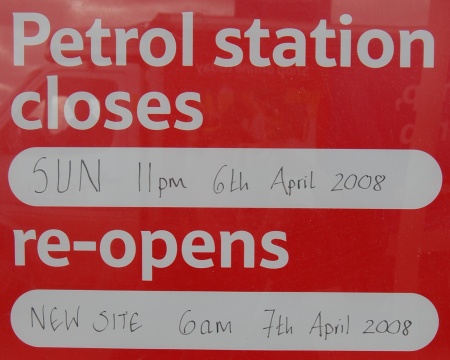 With two days to go before the opening, there seems to be plenty of last-minute finishing-off work to do, but management are evidently sure that the tasks can be completed in time. Demolition of the old filling station is expected to commence as soon as the changeover is complete, so that construction of the new town square and associated shops and offices can be started. The approved planning agreement requires that the bulk of the town square complex be complete before the new Tesco store can open for business.