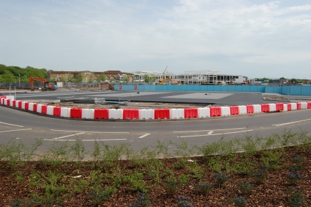 A new area of car parking space, to the right of the new access road as the old Tesco store is approached, is expected to come into service this week. It is understood that it will initially be used for contractors’ vehicles, but when the new Tesco Extra store opens in “late autumn” it will be used by the public whilst the old Tesco store is demolished and its car park re-modelled.