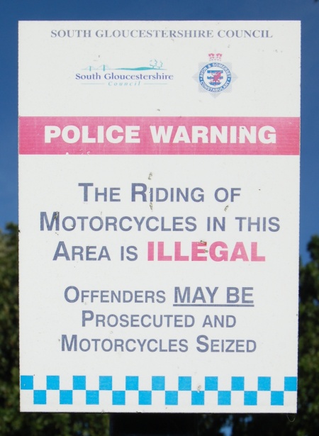 Motorcycle Prohibition NoticeThe Neighbourhood Policing Team in Bradley Stoke has announced a clampdown on the illegal riding of mopeds, motorcycles and mini-mopeds in the Three Brooks Local Nature Reserve.