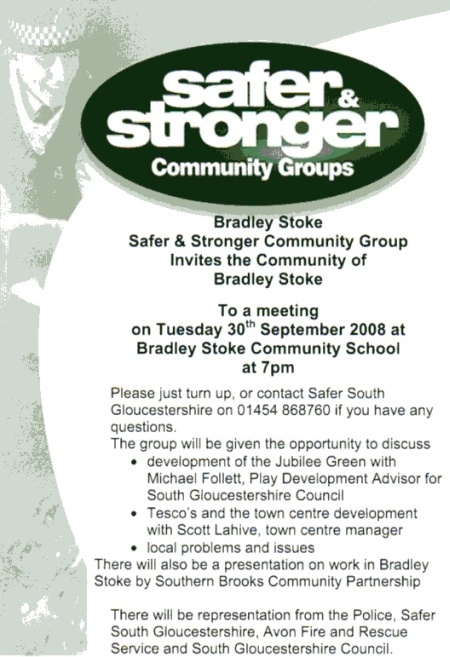 The Safer & Stronger Community Group meeting referred to by Cllr Jones takes place at Bradley Stoke Community School (7pm start).