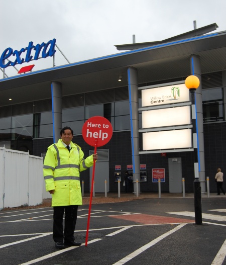 A squad of former Gurkha soldiers, armed with “here to help” lollipop signs, is today on duty in the car park of Bradley Stoke’s Willow Brook Centre, helping shoppers find their way into the new development.