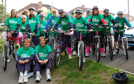 Junior members of Bradley Stoke’s TJ’s Netball Club staged a sponsored cycle ride earlier this week to raise funds for Macmillan Cancer Support.