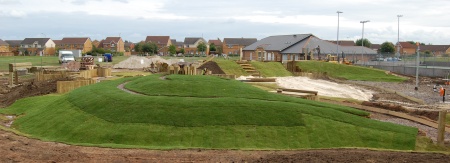 The park has been designed for people of all ages to enjoy and will incorporate slides, a nest swing, rowing and cycling machines, a climbing frame, a sand pit and (eventually) a youth space and shelter.