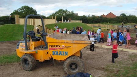 Before construction of the park started in May, the Town Council said that a period of about three weeks would elapse between completion of the project and opening to public, allowing “turf on the site to establish”. However, construction delays combined with a reluctance to move the announced opening date meant that workers were still clearing away equipment and fencing just minutes before the Mayor cut the ribbon to officially open the facility.