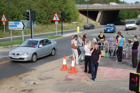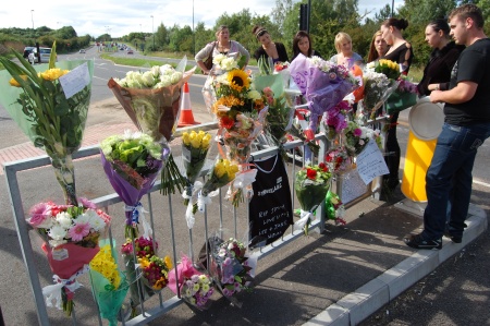 Sunday afternoon saw friends of the deceased and injured gathered at the scene, where flowers and tributes have been tied to railings at the side of the road.