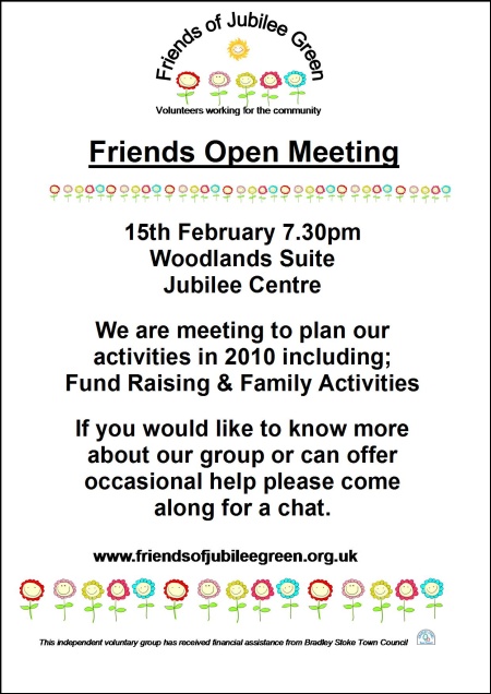 The Friends of Jubilee Green are holding a public meeting on Monday (15th February) to plan their activities for 2010.
