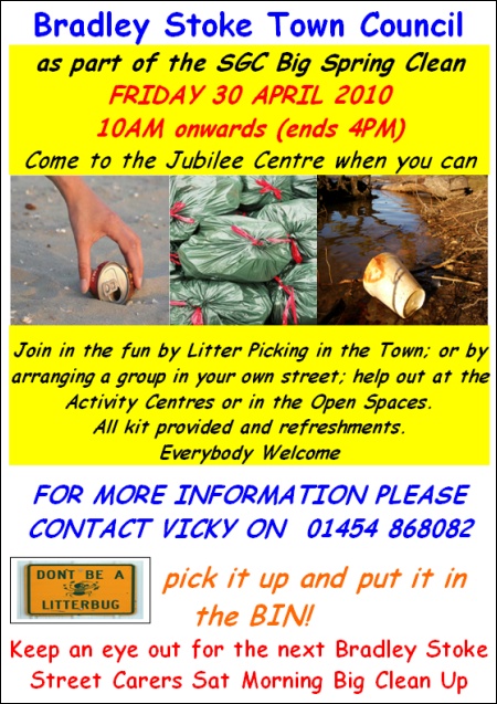 South Gloucestershire Council, through its Big Spring Clean scheme, will provide gloves and black bags for the volunteers and arrange for disposal of the collected rubbish.