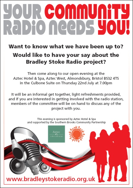 Bradley Stoke Radio is holding an open evening on Thursday (22nd July) for anyone looking to find out more about the town’s new community radio project.