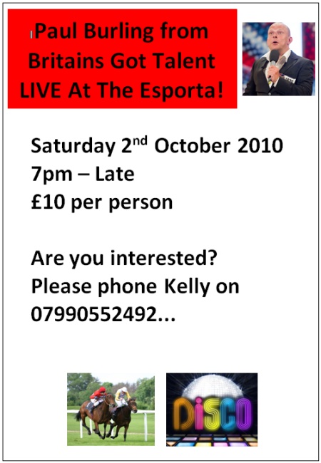 I am writing to let you know what an outstanding success the Fundraising Evening was for Emily Baber. Esporta Health Club was packed. Paul Burling was brilliant! It was a wonderful, fun-filled evening and enjoyed by all.