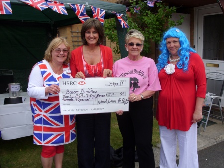 I am delighted to let you know that residents on Garrett Drive raised £314.42 for “Bosom Buddies” at their Royal Wedding Party whilst having a real good time and knees up celebrating an amazing and happy day. We are a local Charity raising monies locally for the benefit of local ladies, and the occasional man, as they face a diagnosis, surgery and treatment for Breast Cancer. Our expenses are nil so every penny raised counts.