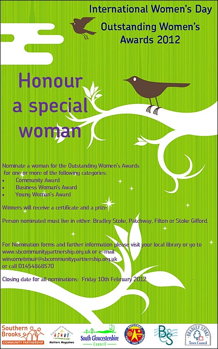 Nominations are welcomed for women living in the Southern Brooks area, which includes Bradley Stoke, Filton, Patchway and Stoke Gifford.
